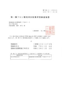 三重フロン類充塡回収:第1001373号